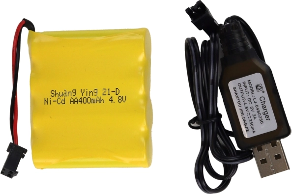 Autobusu darbina 4,8 V 400 mAh akumulators, kas ir iekļauts komplektā. Tālvadības pultij nepieciešamas 2x 1,5 V AA baterijas, kas nav iekļautas komplektā.