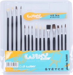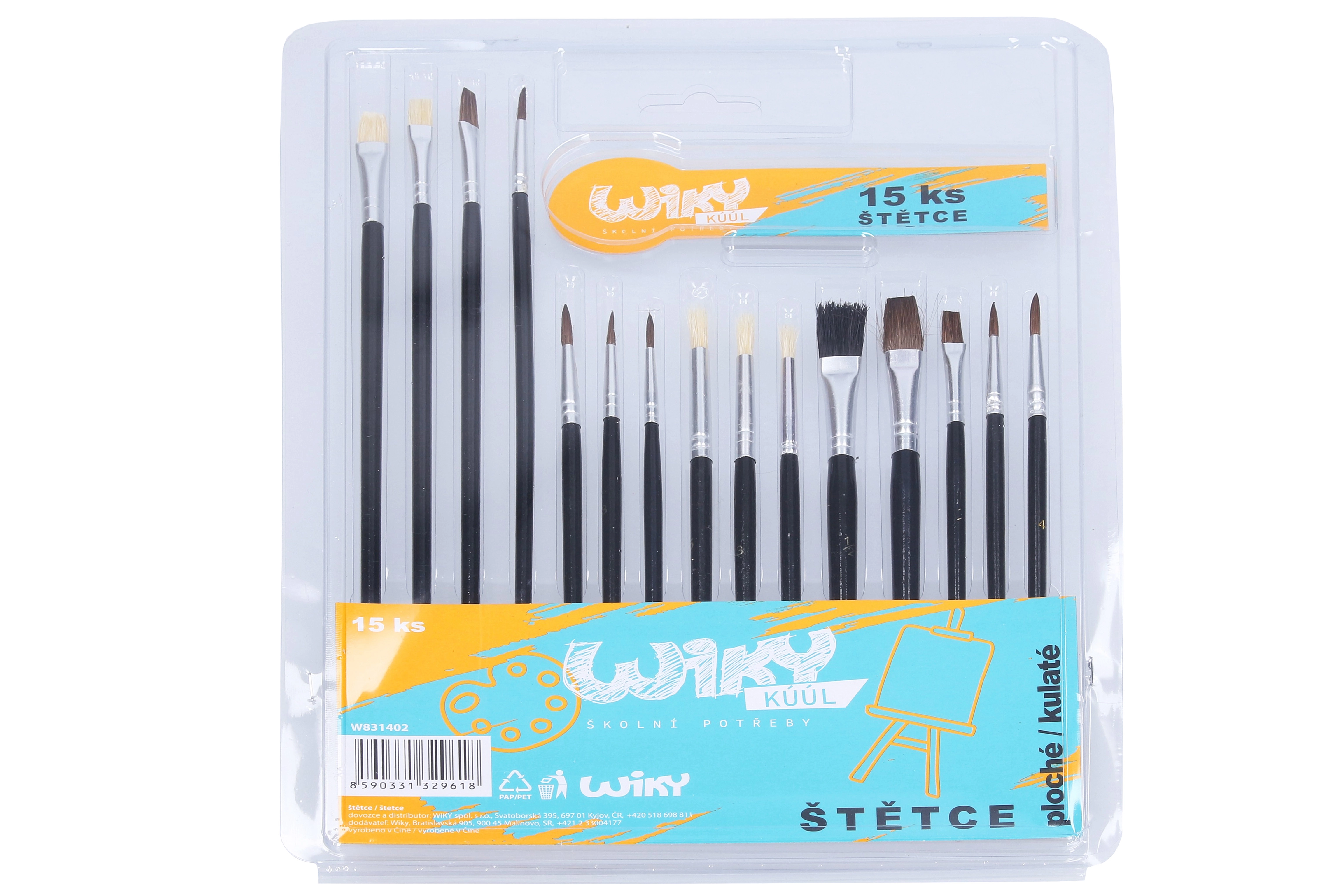 Atklājiet 15 otu komplekta daudzpusību saviem mākslas projektiem — tajā ir dažādi izmēri gan platiem, gan apaļiem triepieniem.