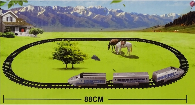 Šis lieliskais vilciena komplekts ir ideāls mazajiem mašīnistiem, kuri vēlas izbaudīt unikālu vilciena vadīšanas pieredzi. Komplektā ir vilciens ar diviem piekabes vagoniem, kurus ir viegli piestiprināt, izmantojot vienkāršus aizspraušanas savienojumus. Sliedes sastāv no divām taisnēm un divpadsmit pusloka sliedēm.