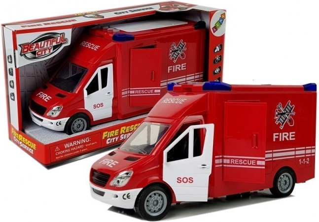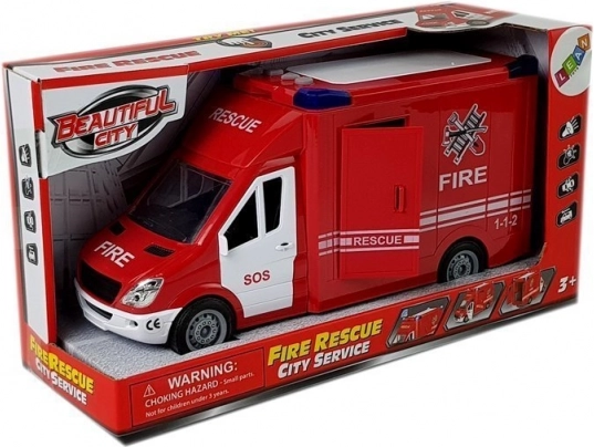 Reālistisks ugunsdzēsēju auto mazajiem glābējiem iepriecinās ar detalizētu izpildījumu, atveramām aizmugures un sānu durvīm, funkcionālām gaismām un sirēnas skaņām un vieglu kustību, pateicoties inerces piedziņai. Ideāla rotaļlieta bērniem no 3 gadu vecuma, izgatavota no izturīgas plastmasas un piegādāta dāvanu iepakojumā.