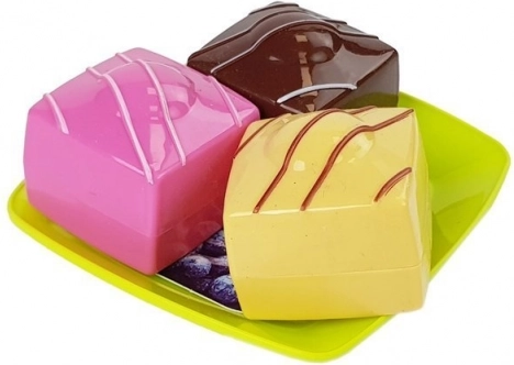 Šis jautrais un krāsainais komplekts ļauj bērniem atdarināt gardu desertu gatavošanu un pasniegšanu, attīstot iztēli un motoriskās prasmes. Košās krāsas un reālistiskais dizains piesaista uzmanību spēlēs “mājas konditoreja”.