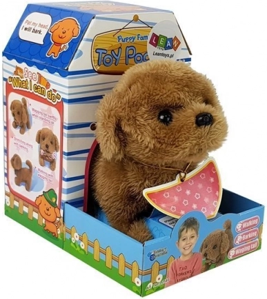 Mīļš plīša sunītis, kas kustas un reaģē uz pieskārienu, ir ideāls bērnu biedrs. Pēc ieslēgšanas viņš staigā, kustina asti, atver mutīti un, paglāsot pa galvu, izdod skaņas. Lielisks veids, kā bērniem mācīt atbildību un attīstīt sīko motoriku un iztēli.