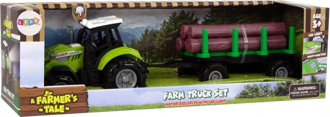 Izklaidējošs komplekts mazajiem saimniekiem: zaļš traktors ar noņemamu piekabi un baļķiem piedāvā realistikus spēles efektus. Pateicoties gaismas un skaņas efektiem, stabilai piekabei un izturīgam plastikātam, bērni piedzīvos daudz aktīvas izklaides gan mājās, gan ārā.