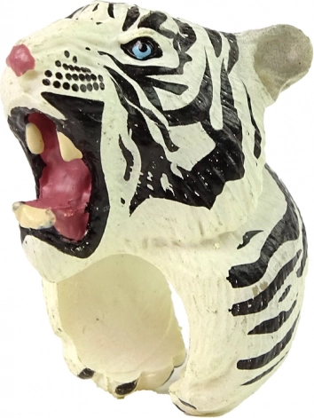 Mīlīgs gredzens ar baltā tīģera motīvu bērniem sniedz gan prieku, gan mācīšanos rotaļājoties. Detalizēti veidotā tīģera galva ar zilām acīm un svītrām ir krāsota ar netoksiskām krāsām, tāpēc ir droša bērniem. Lieliski piemērots kā kostīmu aksesuārs, rekvizīts mazām izrādēm un dāvana dzīvnieku mīļotājiem.