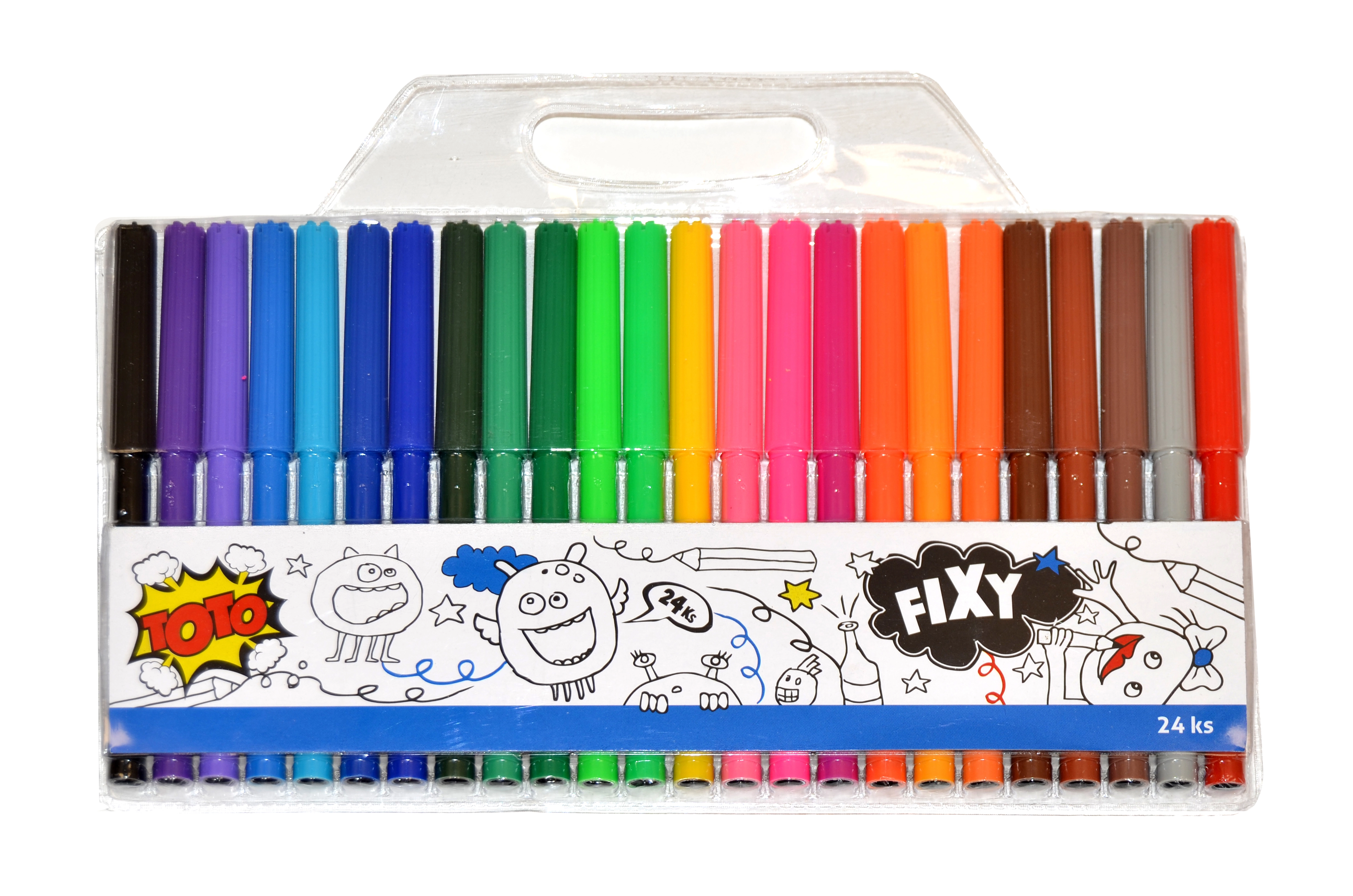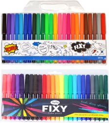 Atklājiet universālu 24 krāsu flomāsteru komplektu, kas iepriecinās gan mazus, gan lielus radītājus. Pateicoties šķiedru uzgalim, flomāsteri ērti slīd pa papīru un nodrošina vienmērīgu, košu līniju. Ideāli skicēšanai, krāsošanai un virsrakstu rakstīšanai.