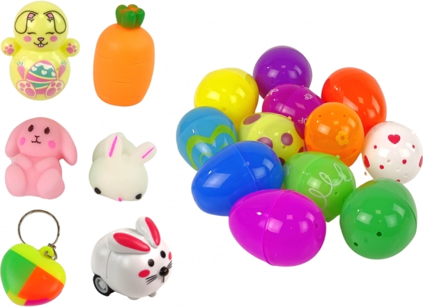 Jautrs Lieldienu komplekts iepriecinās gan bērnus, gan vecākus: tajā ir 12 krāsainas plastmasas olas, no kurām 6 slēpj mini fidget rotaļlietas, un mīlīga truša formas somiņa. Lieliski piemērots dekorācijai un dārgumu meklēšanas spēlēm Lieldienās. Drošs, viegls un piemērots bērniem no 3 gadu vecuma.