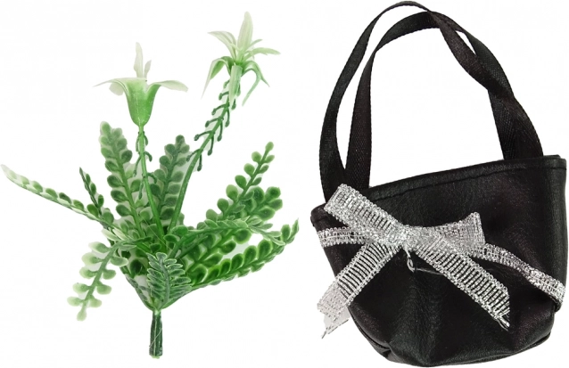 Komplektā ir stilīga melna somiņa un ziedu aksesuāri, kas papildina tērpu. Kvalitatīvi materiāli un rūpīgs izpildījums garantē drošu un patīkamu spēli. Izstrādājums atbilst standartam EN71 un ir marķēts ar CE, tādēļ piemērots bērniem no 3 gadu vecuma.