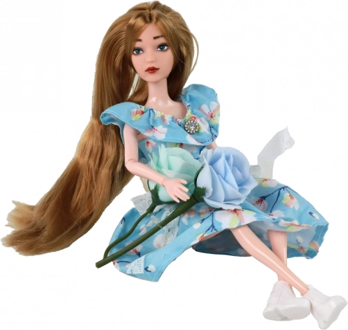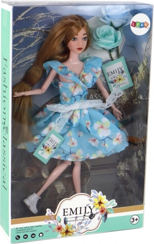 Lelle Emily (30 × 7 × 4 cm) ir ideāla sabiedrotā ikdienas rotaļām. Garos tumši blondu toņa matus var viegli ķemmēt un rotāt, ļaujot bērniem veidot neskaitāmus frizūru variantus. Zilo kleitu ar ziedu rakstu rotā mežģīņu bantīte un neliels “dimanta” akcents pie izgriezuma, kas piešķir lellei elegantu izskatu.