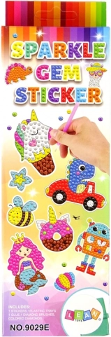 Komplektā ir viss nepieciešamais, lai izveidotu mirdzošas uzlīmes, kas priecēs ikvienu rokdarbu entuziastu. Šī radošā nodarbe attīsta pacietību, precizitāti un roku veiklību. Katrai uzlīmei ir virsma ar līmes kārtu un krāsu marķējums dimantiņiem, kurus nepieciešams piestiprināt. Izveidojiet mazu mākslas darbu, pielīmējot akmentiņu pēc akmentiņa! Uzlīmes attēlo kosmiskās raķetes, lidojošos šķīvjus, dzīvnieku astronautus un mazas planētas.