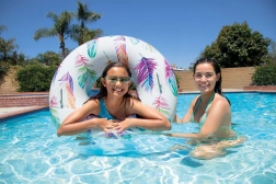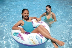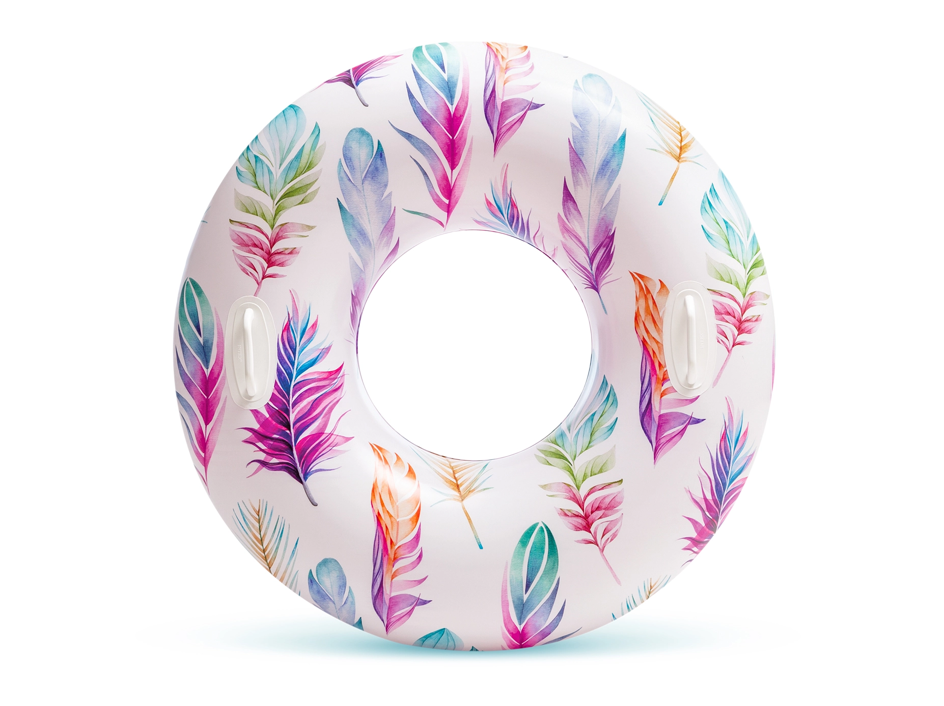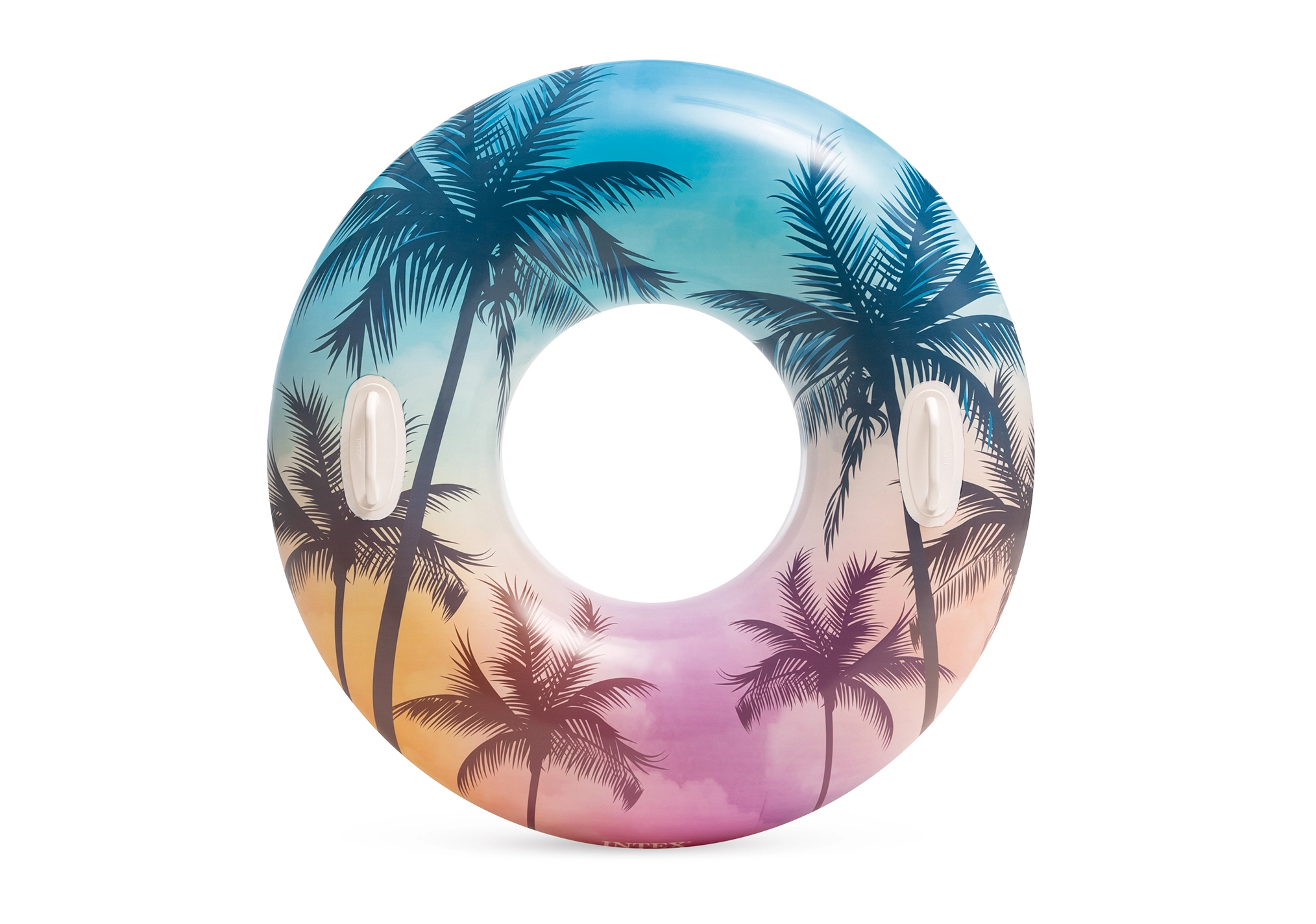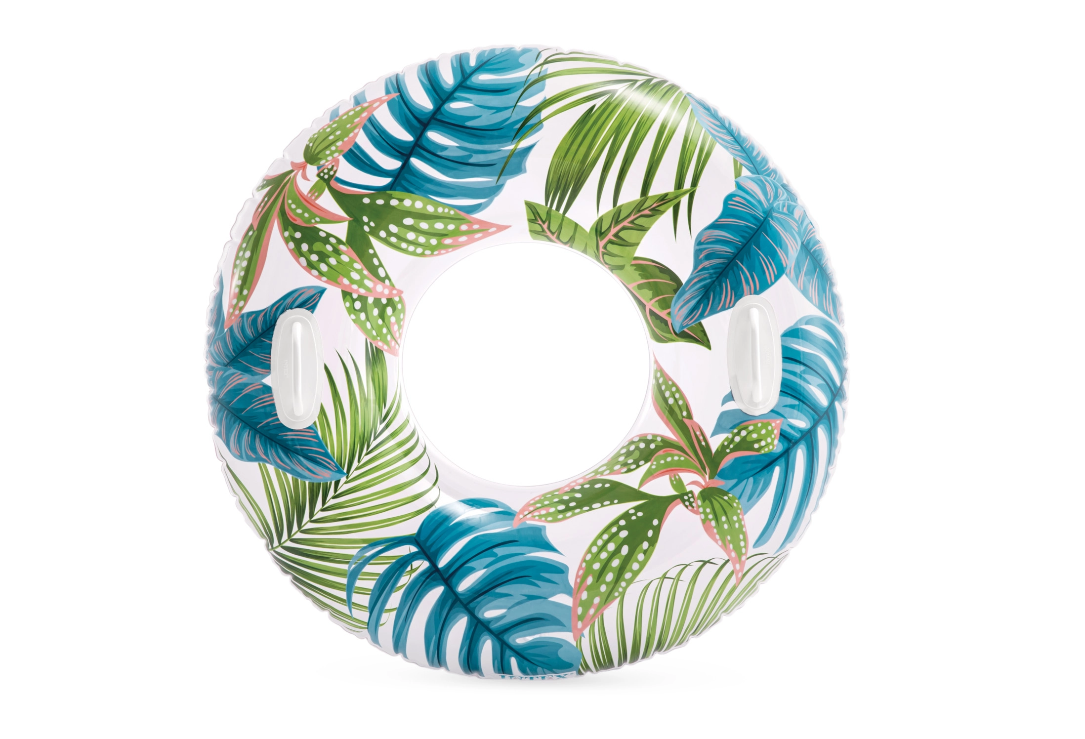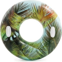 Izturīgais 0,25 mm biezais materiāls labi kalpo gan pie baseina, gan jūrā. Pateicoties tropiskajiem motīviem ar palmām vai flamingiem, riņķis piesaista uzmanību un jūsu vasaras ekipējumam piešķir svaigu stilu.