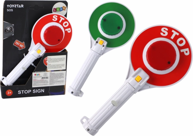 Šī bērnu policijas plāksnīte ir lielisks papildinājums kostīmam un arī patstāvīga rotaļlieta ikdienas spēlēm. Divpusējais izpildījums ar sarkano un zaļo pusi reālistiski atdarina satiksmes regulēšanu, bet gaismas efekti, ko aktivizē pogas katrā pusē, piešķir spēlei īstuma sajūtu. Izturīga plastmasa un ērts balts rokturis nodrošina vieglu un drošu lietošanu.