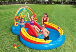 Uzpūšams ūdens rotaļu laukums ar varavīksni un slidkalniņu Intex