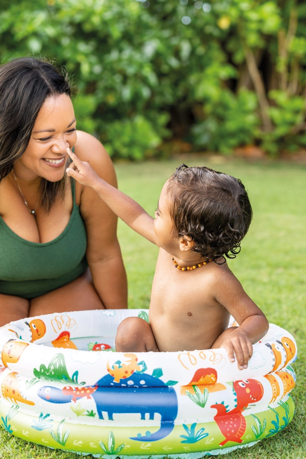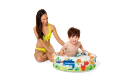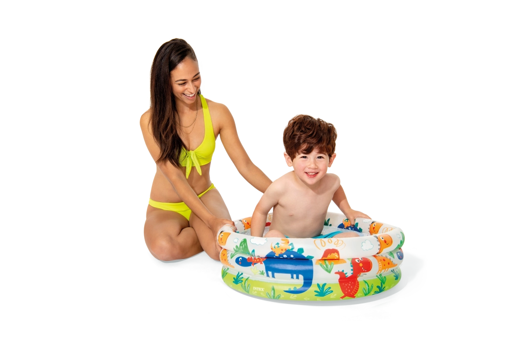 Intex uzpūšamais baseins ar mīlīgiem dinozauriem ir ideāls pirmajām ūdens aktivitātēm bērniem no 1 līdz 3 gadiem. Pateicoties 61 cm diametram un 22 cm augstumam, tas der gandrīz jebkur un nodrošina drošu un seklu zonu rotaļām un veldzē karstās dienās.