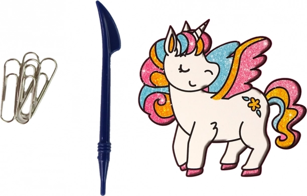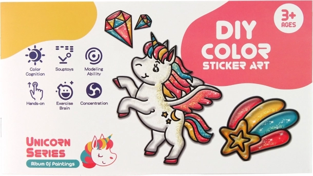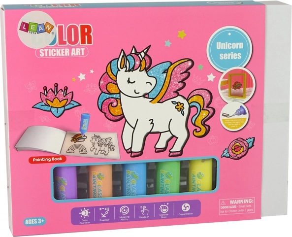 Šis komplekts piedāvā dažādas uzlīmes ar burvīgiem vienradžiem, košām varavīksnēm un mirdzošām zvaigznēm. Jūsu bērns izbaudīs savu dizainu gleznošanu. Uzlīmēm ir tikai kontūras, bet iekšējais pildījums ir atkarīgs no katra bērna iztēles. Komplektā atradīsiet 8 mirdzošas krāsas, kas piešķirs uzlīmēm spozmi un mirdzumu maģiskās zemes noskaņās.