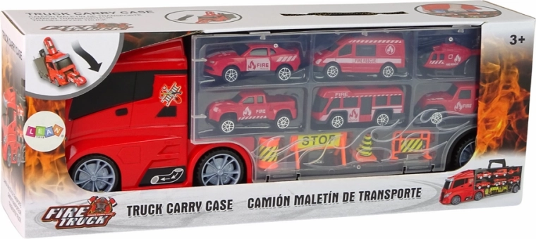 Liels pārvadātājs mazajiem varoņiem: šis ugunsdzēsēju kravas auto ar piekabi un mini transportlīdzekļu komplektu nodrošina stundām ilgu izklaidi glābšanas misijās. Komplektā ietilpst kravas auto ar glabāšanas nodalījumu, 5 ugunsdzēsēju transportlīdzekļi, helikopters un ceļa zīmes. Praktiska roktura dēļ to ir viegli pārnēsāt, bet kompaktais čemodāna dizains uztur visu kārtībā.