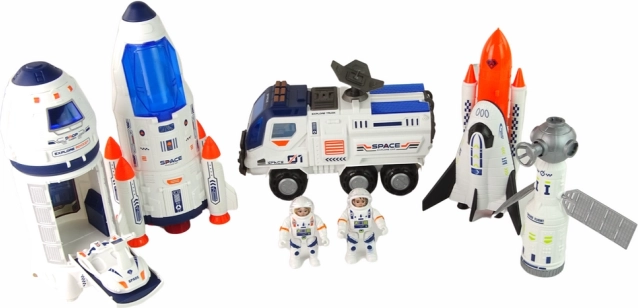 Komplektā ietilpst arī kosmosa satelīts ar saules paneļiem un antenām “signāla uztveršanai”, kā arī kosmosa vilcējs un mazāks izpētes transportlīdzeklis aprīkojuma pārvadāšanai uz nezināmām planētām. Komplektā izmantota izturīga plastmasa, un tas ir ideāli piemērots bērniem, kuri mīl kosmosu un tehnoloģijas.