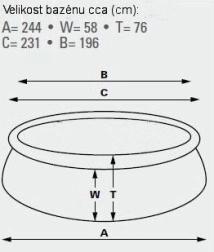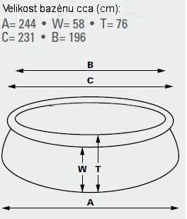 - diametrs 183 cm × augstums 51 cm