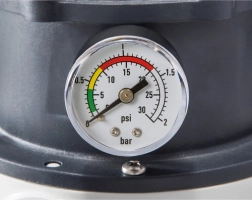 Piecceļu vārsts, pārskatāms manometrs un iebūvēts taimeris automātiskiem cikliem atvieglo ekspluatāciju un taupa enerģiju.