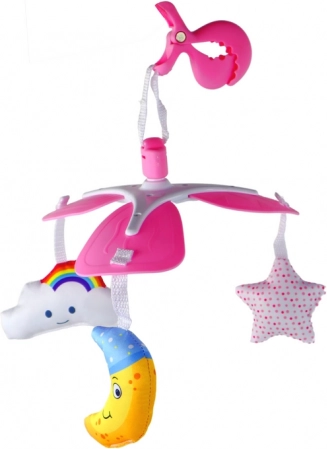 Piekaramais karuselis ar klipsi ir praktisks un viegli pārnēsājams, ļaujot jūsu bērnu izklaidēt un stimulēt jebkur un jebkurā laikā. Pateicoties īpašajam klipsim, to var viegli un droši piestiprināt pie gultiņas malas, ratiņiem vai nēsājamās somas siksnām. Komplektā ir trīs mīkstas, krāsainas rotaļlietas – mēnestiņš, mākonītis un zvaigznīte, kas piesaista bērna uzmanību un veicina viņa sensorās attīstības procesu.