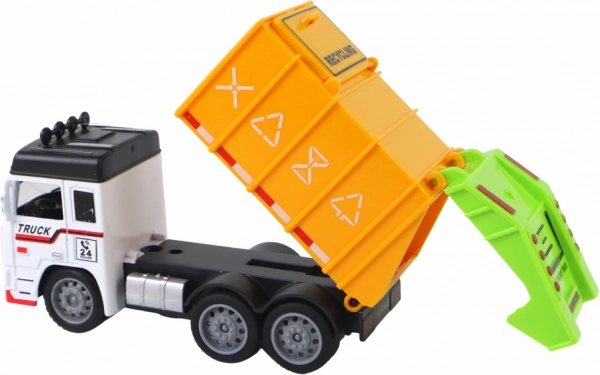 Šis detalizēti izstrādātais atkritumu savākšanas komplekts piedāvā autentisku izskatu ar reālistiskiem apdrukas elementiem un funkcionālām detaļām. Pateicoties berzes piedziņai, transportlīdzeklis viegli ierosinās ar vienkāršu pastumšanu, bet atveramā piekabe un augšējā piepildīšanas atvere rosina radošu spēli “atkritumu” savākšanā un izbirināšanā.