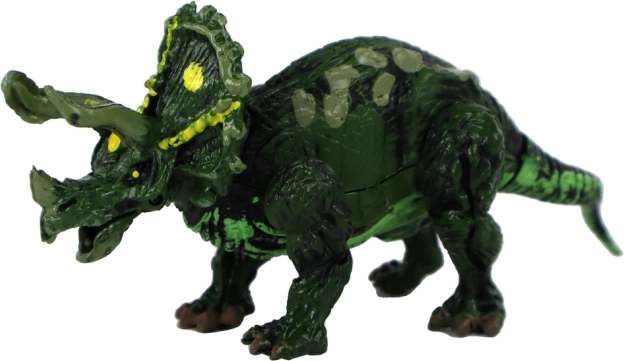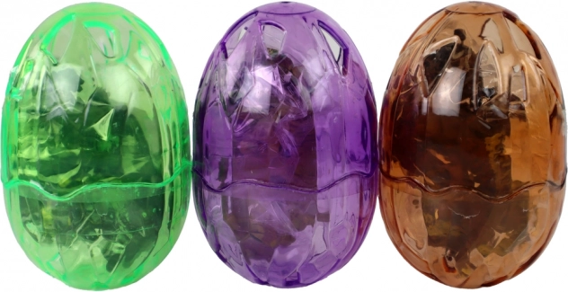 Caurspīdīga plastmasas ola ar izmēriem 9 × 6 × 6 cm slēpj reālistisku dinozaura figūriņu, ko bērns redz vēl pirms atvēršanas. Olu ir viegli atvērt, un tā kalpo arī kā ērts kārbiņas tipa iepakojums rotaļlietas glabāšanai – lieliski piemērota ceļojumiem un bērnu istabām.