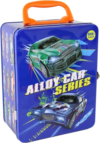 Komplektā ir stilīgs skārda koferītis ar sporta auto motīvu, metāla aizdari un nolokāmu rokturi. Iekšpusē atradīsiet pārskatāmus nodalījumus drošai auto glabāšanai – perfekti mazajiem kolekcionāriem gan ceļā, gan bērnistabā.