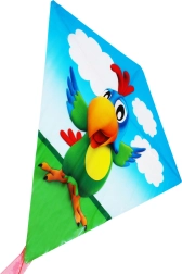 Lidojošs pūķis Papagailis Viktors piedāvā lielisku izklaidi gan bērniem, gan pieaugušajiem. Šis košais dimanta formas pūķis sagādā prieku lidojumā, pateicoties vieglai vadāmībai un mirdzošam dizainam.