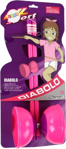 Diablo ar izmēriem 13,5 x 11,5 cm ir unikāla izklaidējoša rotaļlieta, kas aizvedīs jūs aizraujošajā žonglēšanas pasaulē. Komplektā ir divi izturīgi plastmasas kātiņi (26 cm) un 110 cm garš auklas pavediens, kas ļauj veikt ļoti iespaidīgas akrobātikas, piemēram, mešanu un griešanu ap auklu.