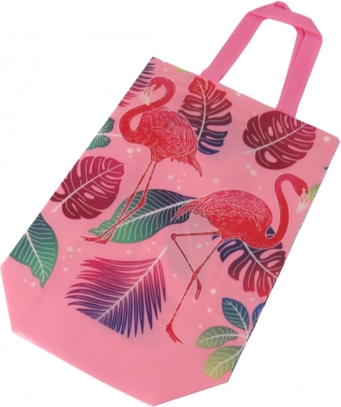 Stilīgs rozā dāvanu maisiņš ar flamingu motīvu piešķirs jūsu dāvanai eleganci un tropisku šarmu. Tas ir izgatavots no izturīga materiāla, kas droši aizsargā saturu, un pateicoties universālam dizainam, ir piemērots dzimšanas dienām, svētkiem un citām reizēm. Turklāt tas ir atkārtoti lietojams.