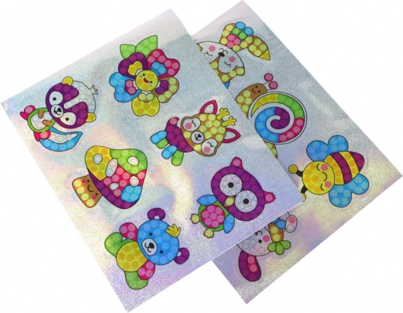 Atklājiet radīšanas prieku ar bērnu dimanta gleznošanas uzlīmju komplektu. Līmējot sīkus mirdzošus akmentiņus uz iepriekš iespiestiem šabloniem, top oriģinālas un izturīgas dzīvnieku uzlīmes, ar kurām var rotāt klades, mugursomas un penāļus. Nodarbe ir vienkārša un aizraujoša, lieliski attīsta sīko motoriku, pacietību un acu–roku koordināciju.
