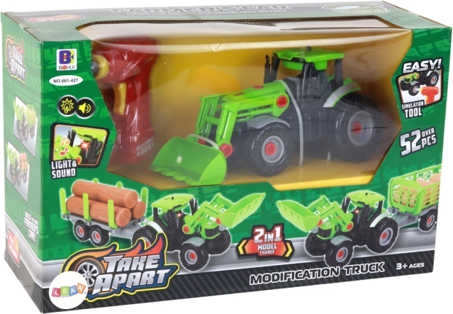 Izklaidējošs un izglītojošs komplekts mazajiem meistariem: traktors ar piekabi, kuru bērni var paši salikt un izjaukt. Komplektā iekļauta arī bērnu urbjmašīna/screwdriver. Rotaļlieta piedāvā reālistiskas motora skaņas un gaismas efektus, attīsta sīko motoriku, radošumu un loģisko domāšanu.