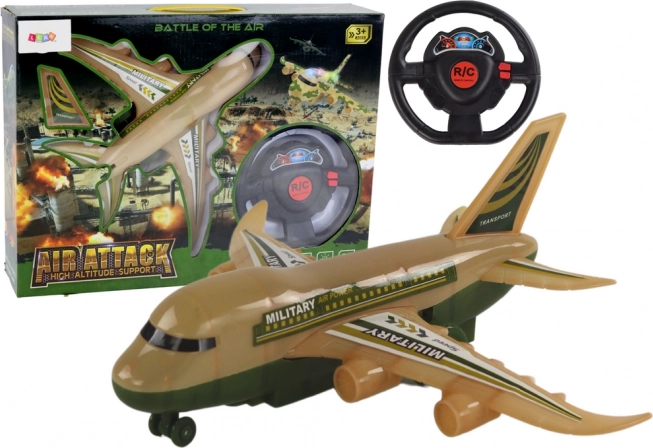 Izklaides rotaļlieta tālvadāmas lidmašīnas veidolā ar militāru maskējumu brūnos un zaļos toņos sniedz bērniem bezgalīgas piedzīvojumu iespējas. Pateicoties stingrai uzbūvei un uzmanībai detaļām, tā iepriecinās visus mazos aviācijas entuziastus. Ar pievienoto pulti bērni viegli pārņem lidojuma kontroli. Vadība ir pielāgota arī mazām rociņām, kas nodrošina ērtu lietošanu.