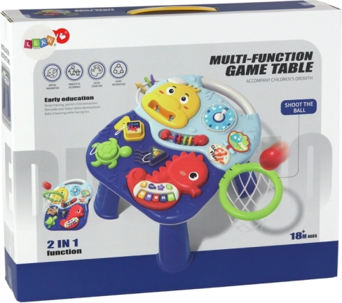 Krāsains interaktīvs galds ar jūras dzīvnieku motīvu apvieno mācīšanos un kustību vienā. Bērnus aizraus klavieres, pulkstenis, attēlu grāmatiņa un astoņkājis ar krellēm, savukārt grozs bumbiņām piešķirs sportisku izaicinājumu. Spēle dabiski attīsta sīko motoriku, sensoro uztveri un roku–acu koordināciju.