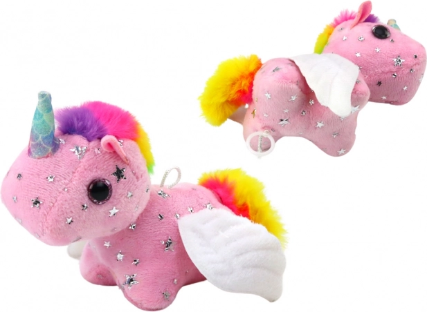 Plīša vienradzis ir apburoša rotaļlieta, kas aizved bērnus maģijas pasaulē. Pateicoties uzvelkamai aukliņai, vienradzis pēc atlaišanas priecīgi lēkā un kustina asti, kas padara rotaļu vēl aizraujošāku. Maigais rozā kažoks ar sudrabotām zvaigznītēm, krāsaina krēpe un balti spārniņi rotaļlietai piešķir maģisku izskatu.
