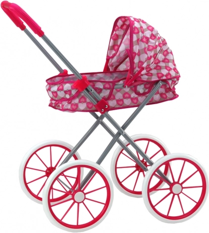 Meklējat skaistus un vienlaikus praktiskus leļļu ratiņus? Šis rozā modelis ar sirsniņām apvieno pievilcīgu izskatu ar pārdomātām funkcijām. Pateicoties lieliem putuplasta riteņiem, tie lieliski ripo gan mājās, gan ārā, bet salokāms jumtiņš veicina realistisku spēli – gan “spīdot saulītei”, gan līstot lietum.