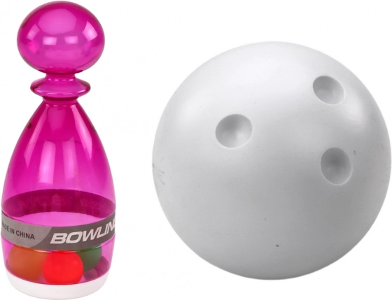 - 6 ķegļi (2 violeti, 2 zili, 2 dzelteni) + 1 bumba
