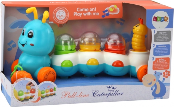 Krāsainais velkamais kāpuriņš uz riteņiem ar aukliņu ļauj bērnam sākt rotaļu, velkot to un klausoties jautras melodijas. Tas stimulē dzirdes uztveri un attīsta motoriskās prasmes, velkot un virzot kāpuriņu.