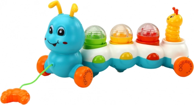 Šī interaktīvā rotaļlieta satur trīs plastmasas bumbiņas uz kāpuriņa muguras. Bērns tās var izņemt un ripināt pa grīdu, kas sniedz prieku un attīsta acu–roku koordināciju un sīko motoriku.