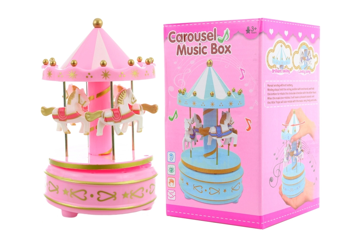 Atklājiet klasisku rotaļlietu, kas nekad neapnīk. Šis spēlējošais karuselis tiek aktivizēts ar vienkāršu rokas pagriezienu – tas sāk griezties un atskaņo melodiju, kas bērnus piesaista un nomierina. Pateicoties mehāniskajai darbībai, tam nav vajadzīgas baterijas, tāpēc tas vienmēr ir gatavs lietošanai.