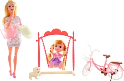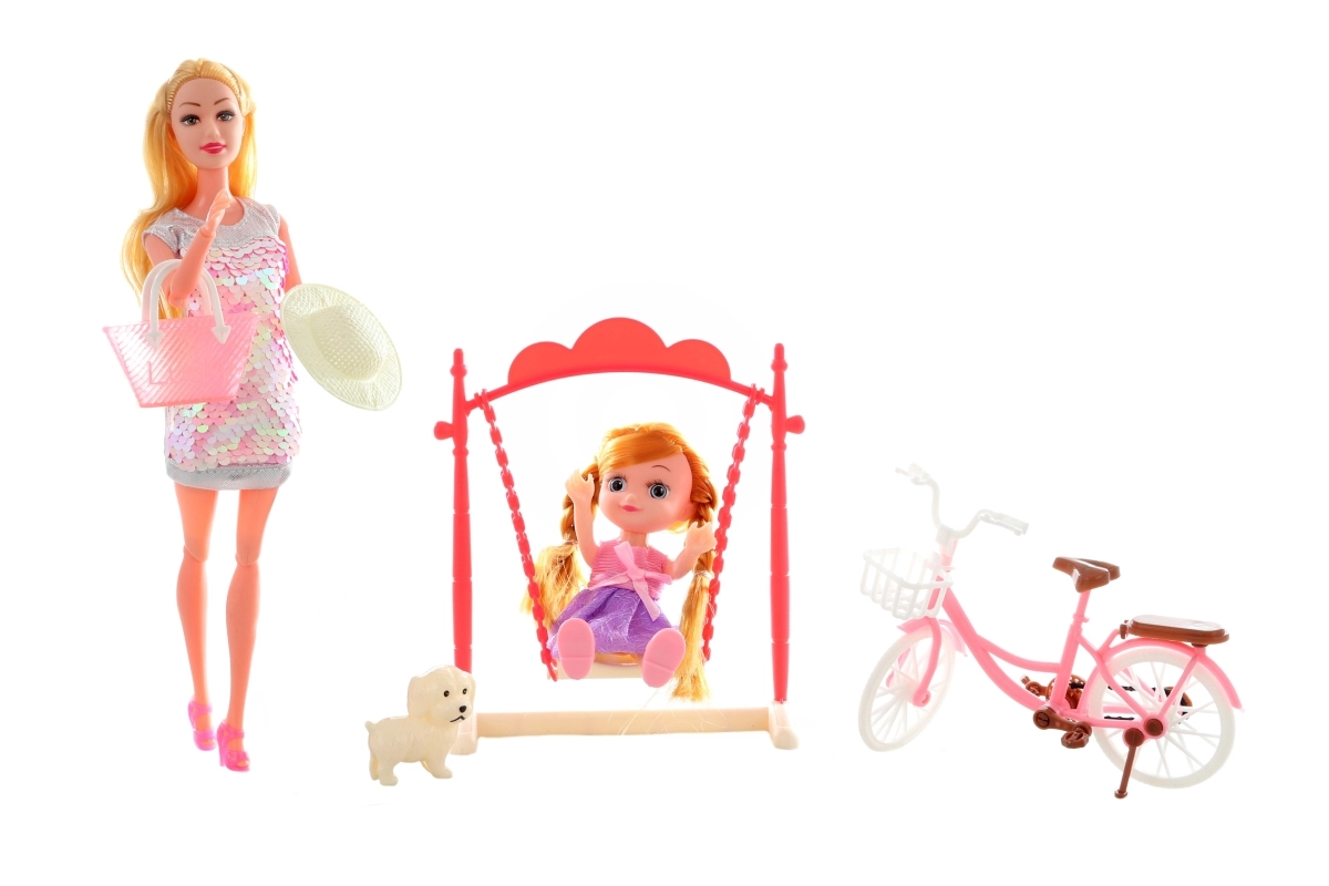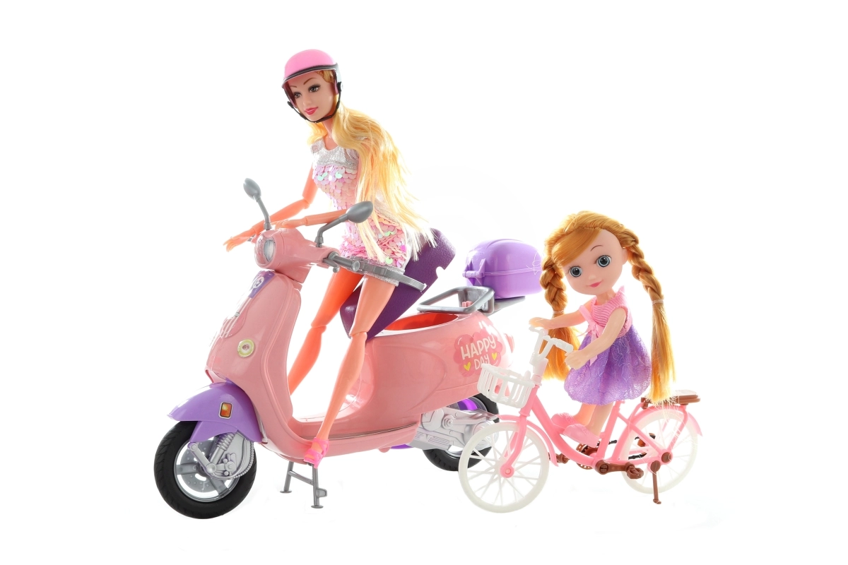 Atklājiet lielo leļļu komplektu ar aksesuāriem, kas sniedz stundām ilgu radošu izklaidi. Tajā atradīsiet locītu lelli 30 cm, mazo lelli 16 cm, rozā auto 33 cm, motorolleru 30 cm, velosipēdu 17 cm, šūpoles, sunīti un stilīgus aksesuārus, piemēram, cepuri, ķiveri un somu. Kvalitatīvs plastmasas izpildījums, iepakots dāvanu kastē. Vecums 3+.