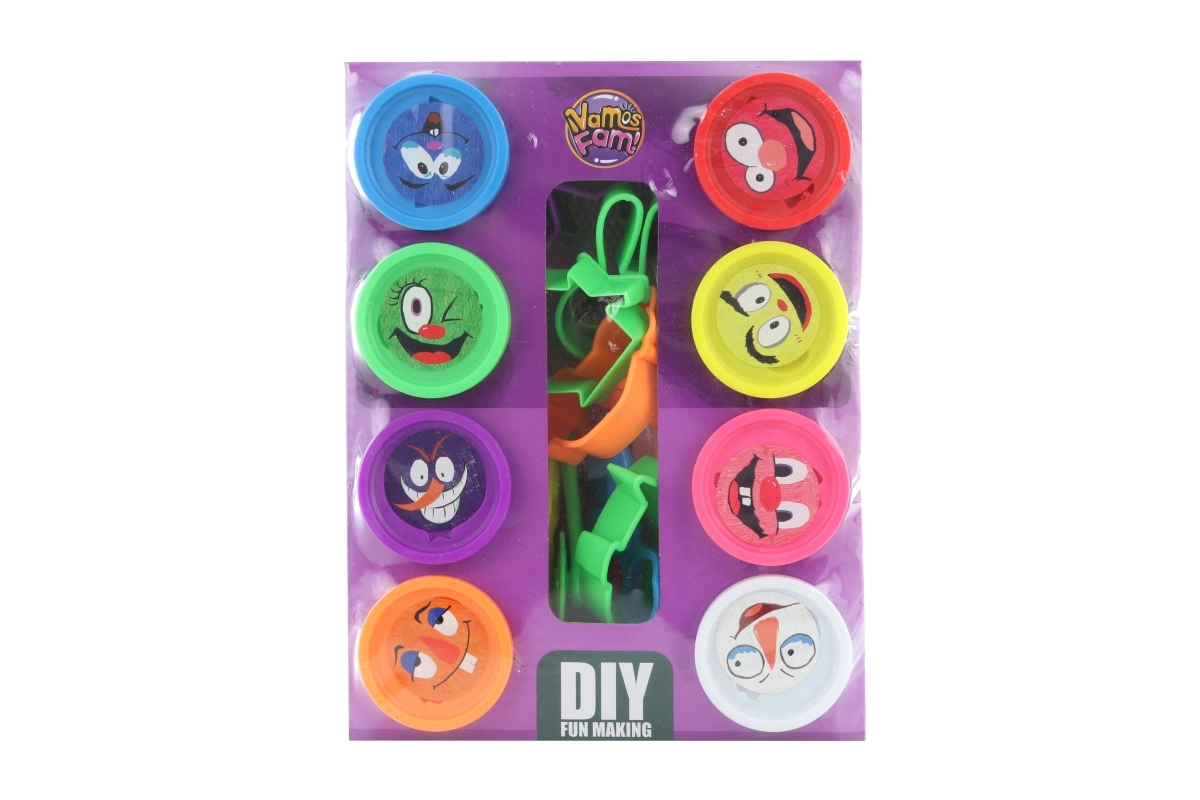 Modelēšanas plastilīna komplekts ar formiņām piedāvā astoņus krāsainus trauciņus ar plastilīnu, kas veicina bērnu iztēli.