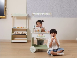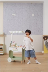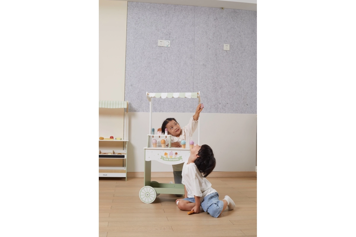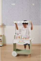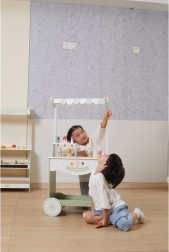 Ar divu riteņu konstrukciju šis mobilais kiosks ir ideāli piemērots spēlēm gan telpās, gan ārā, un veicina lomu spēles un sociālo mijiedarbību.