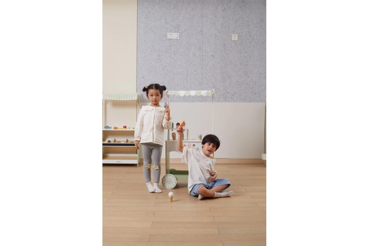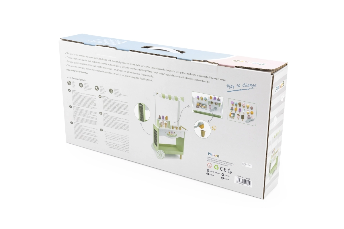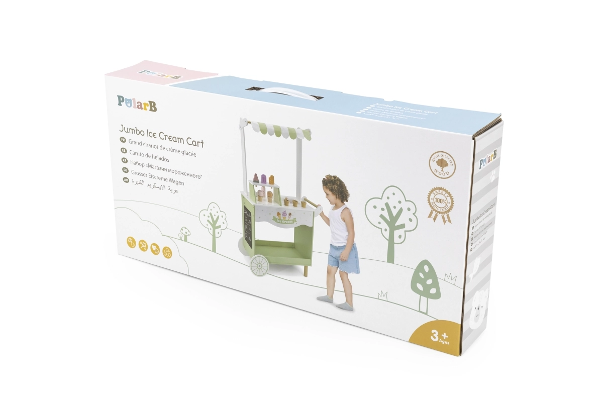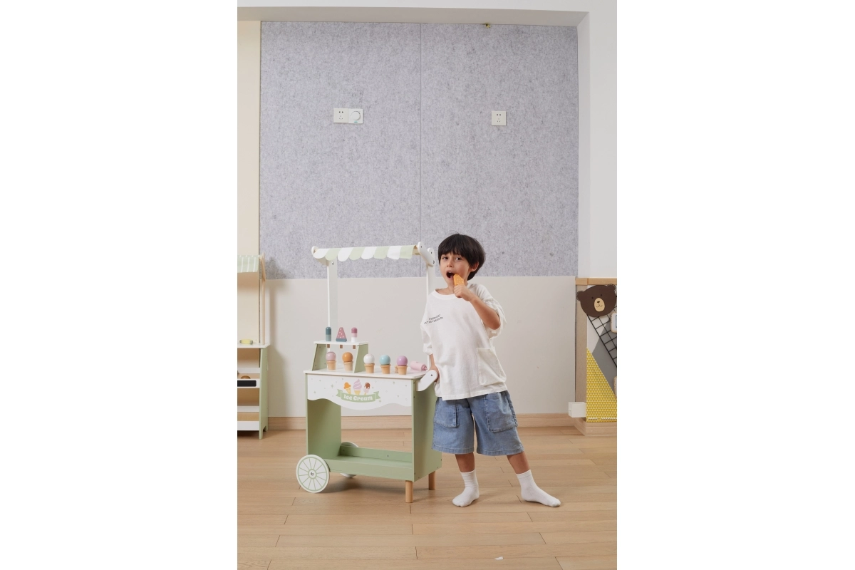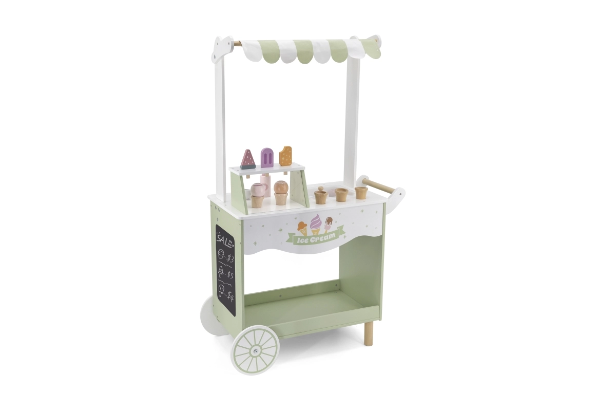 Dodies fantāzijas pilnā piedzīvojumā ar mūsu koka saldējumu kiosku bērniem. Šis košais kiosks ietver plašu koka saldējumu un piederumu klāstu, kas bērnus izklaidēs stundām ilgi: