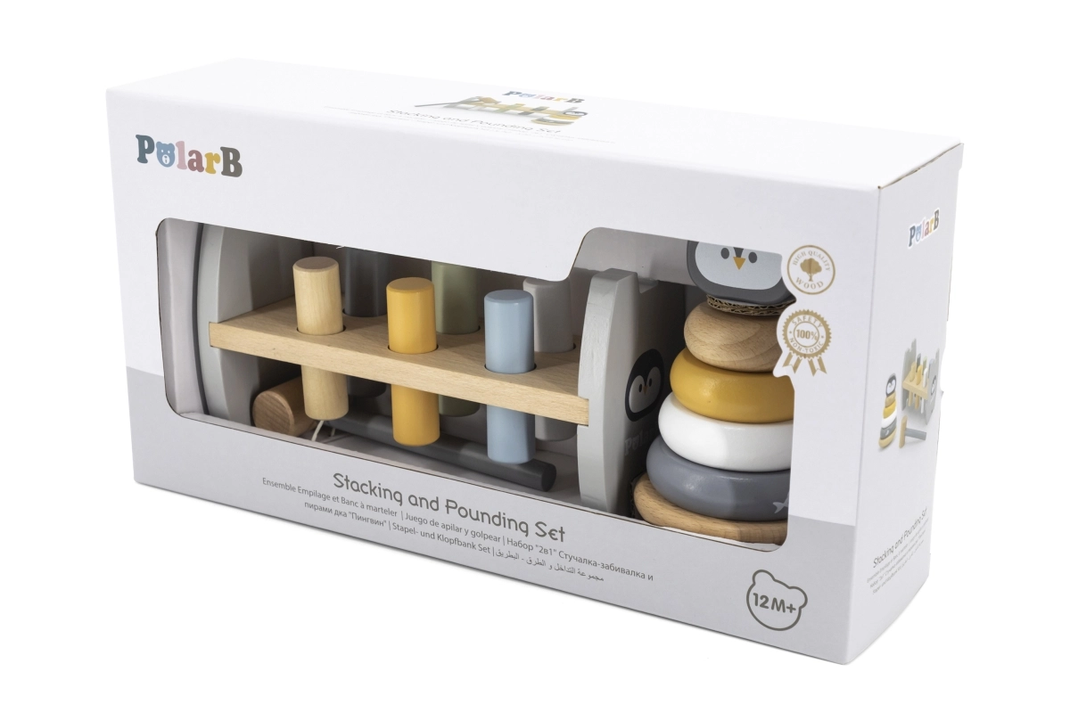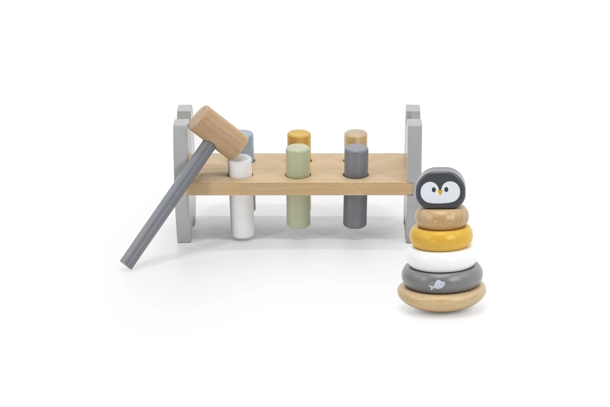 Iepazīstieties ar lielisko PolarB sērijas komplektu no Viga, kas ietver divas pasteļtoņu koka rotaļlietas: izglītojošu piramīdu un āmuriņu ar pingvīnu. Šīs rotaļlietas sniedz daudz vairāk nekā tikai izklaidi – tās veicina bērna svarīgo prasmju attīstību.
