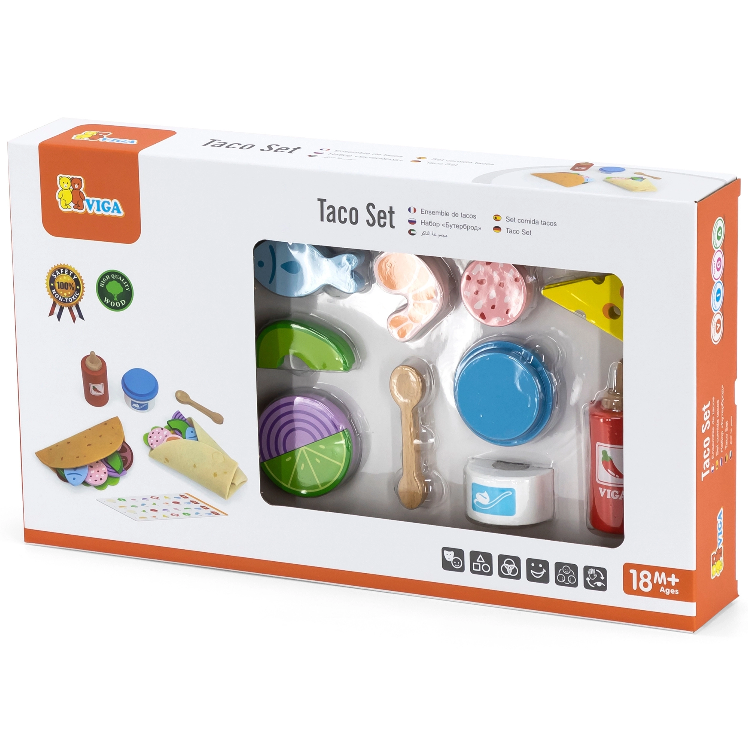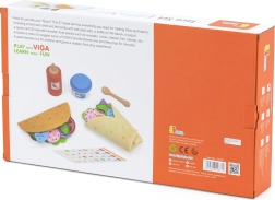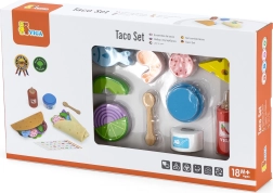 VIGA taco un burrito komplekts sniedz bērniem autentisku gatavošanas pieredzi. Mīkstās filca tortiljas un košie koka pārtikas gabaliņi (dārzeņi, siers, zivs u.c.) rosina jaukt garšas un veidot savas receptes. Pateicoties piederumiem, piemēram, mērces pudelei, “jogurta” trauciņam un koka karotītei, spēle kļūst vēl daudzveidīgāka.