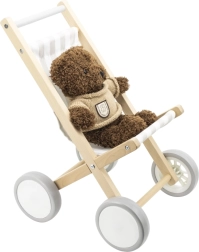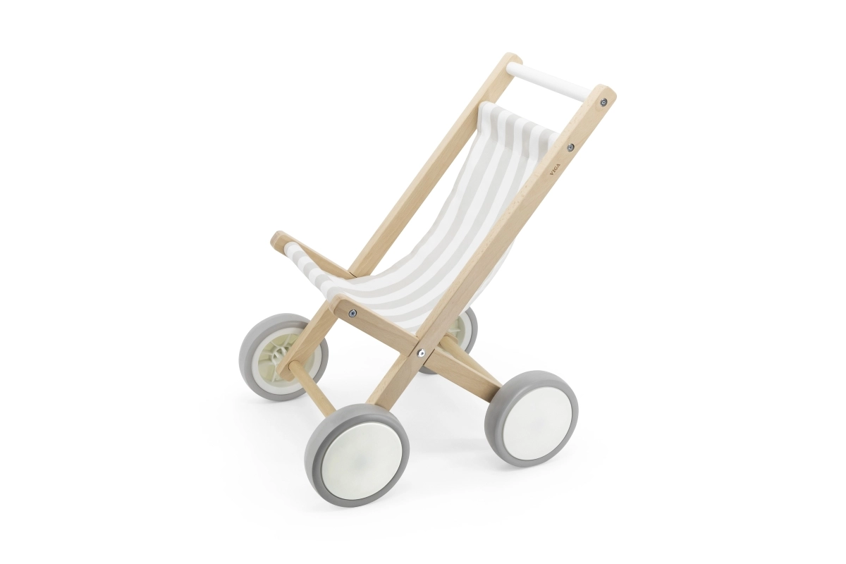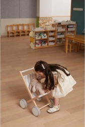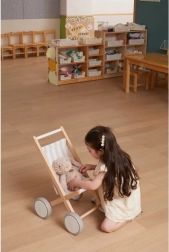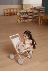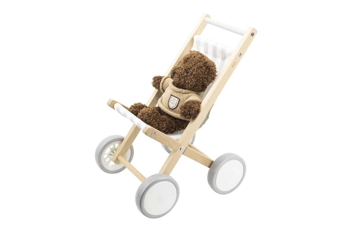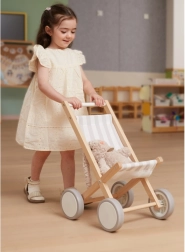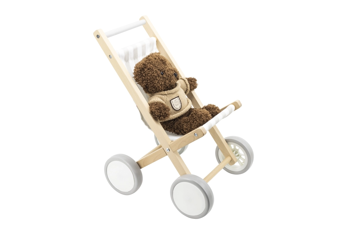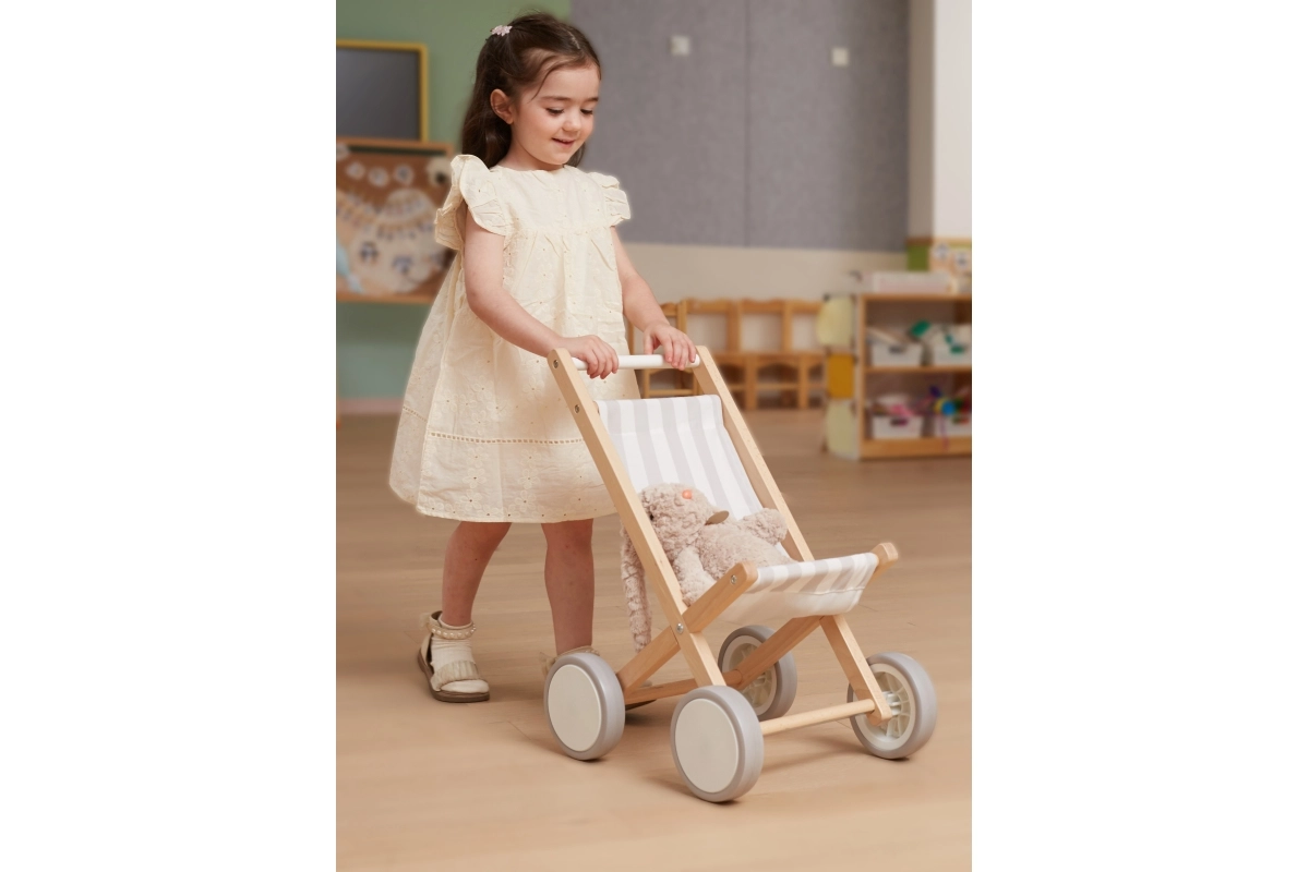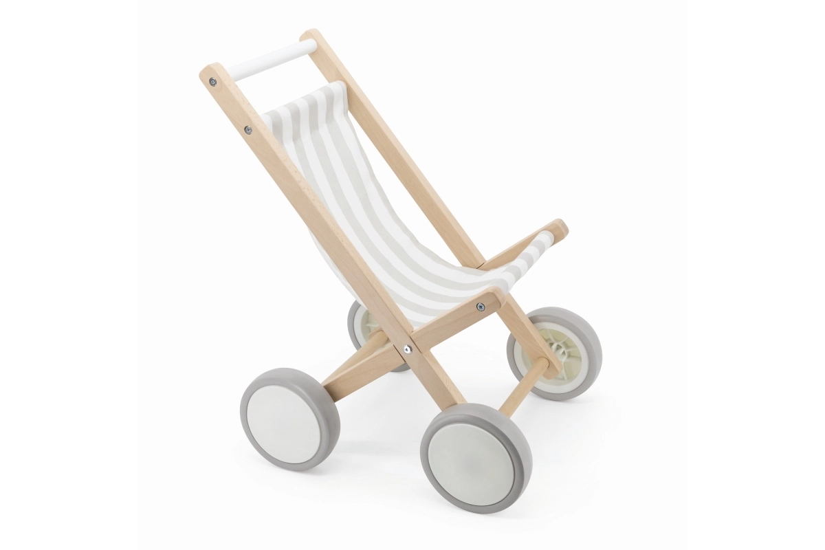 Stilīgi un stabili leļļu ratiņi no dabīga koka ar tekstila sēdekli. Piedāvā izturīgu konstrukciju, klusus riteņus, kas saudzē grīdu, un ir ideāli iztēles un motorikas attīstīšanai bērniem jau no 18 mēnešiem. Kompaktie izmēri 35 × 45,5 × 55,5 cm iederas jebkurā bērnistabā.