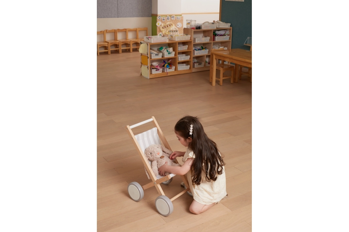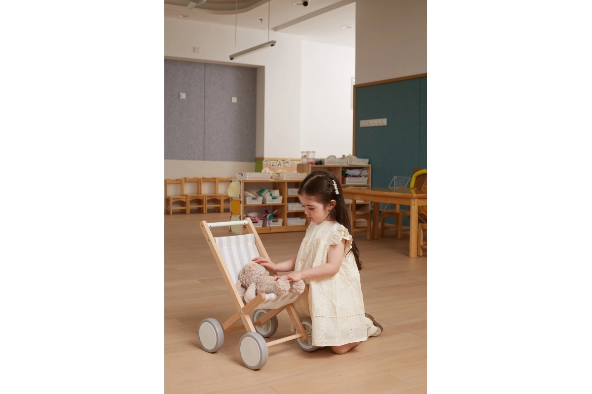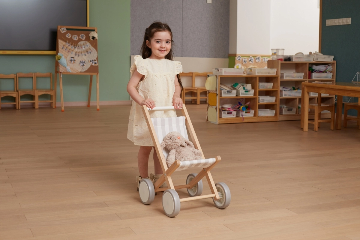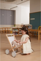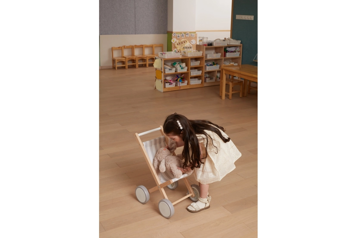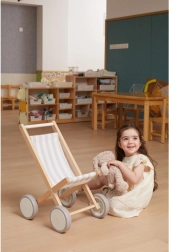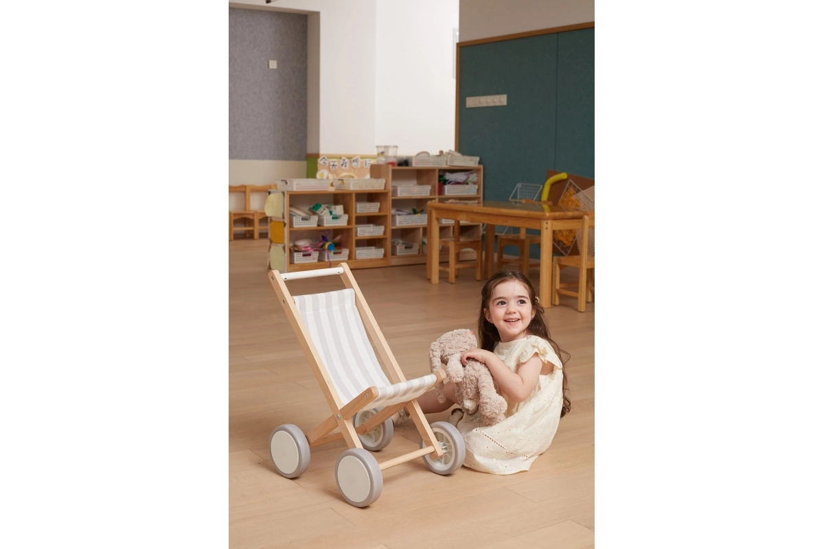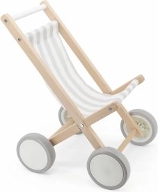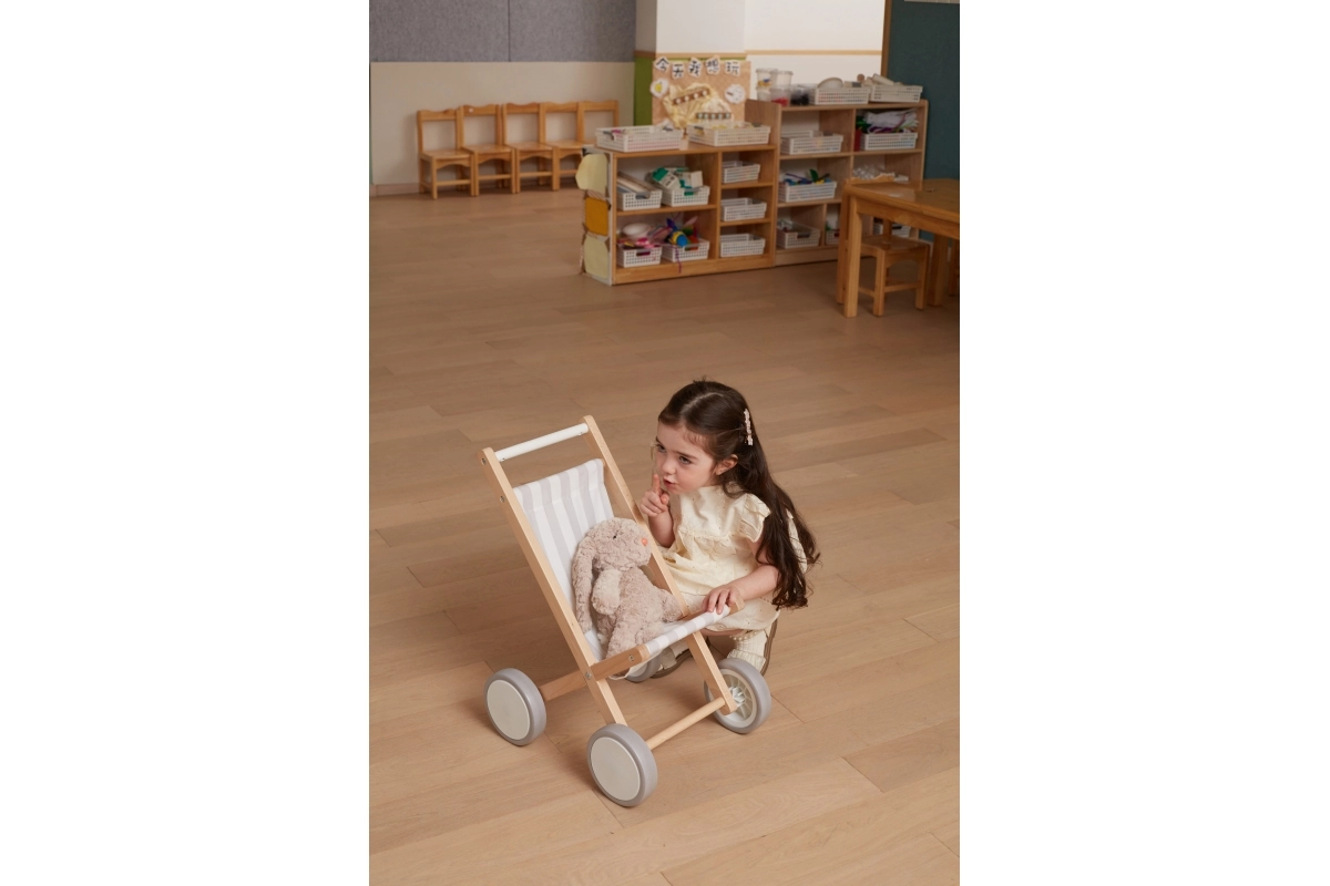 Stilīgi un stabili leļļu ratiņi no dabīga koka ar tekstila sēdekli. Piedāvā izturīgu konstrukciju, klusus riteņus, kas saudzē grīdu, un ir ideāli iztēles un motorikas attīstīšanai bērniem jau no 18 mēnešiem. Kompaktie izmēri 35 × 45,5 × 55,5 cm iederas jebkurā bērnistabā.