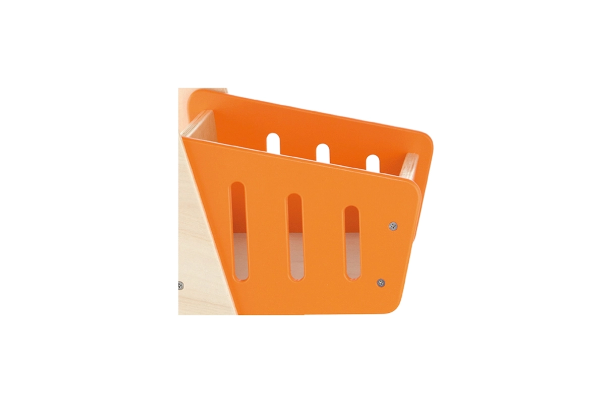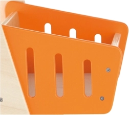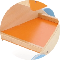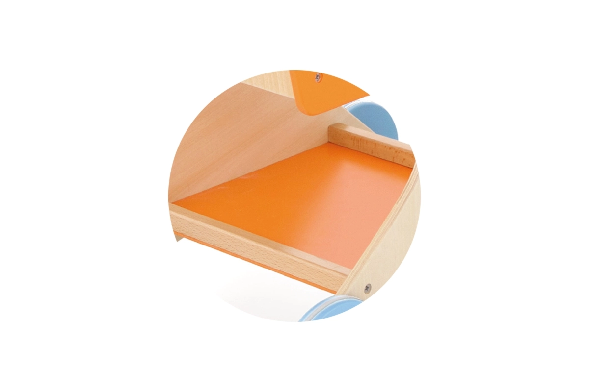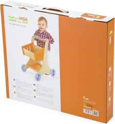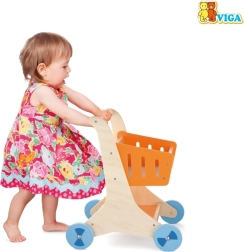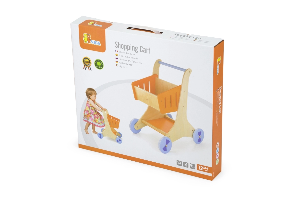 Stilīgi koka iepirkumu ratiņi ar oranžu grozu un zilām ritenīšiem ir ideāli pirmajiem soļiem lomu spēļu pasaulē. Tie veicina lielās motorikas attīstību, līdzsvaru un radošu iztēli. Vieglā, stabilā konstrukcija ar gludām malām ir droša bērniem no 12 mēnešu vecuma.