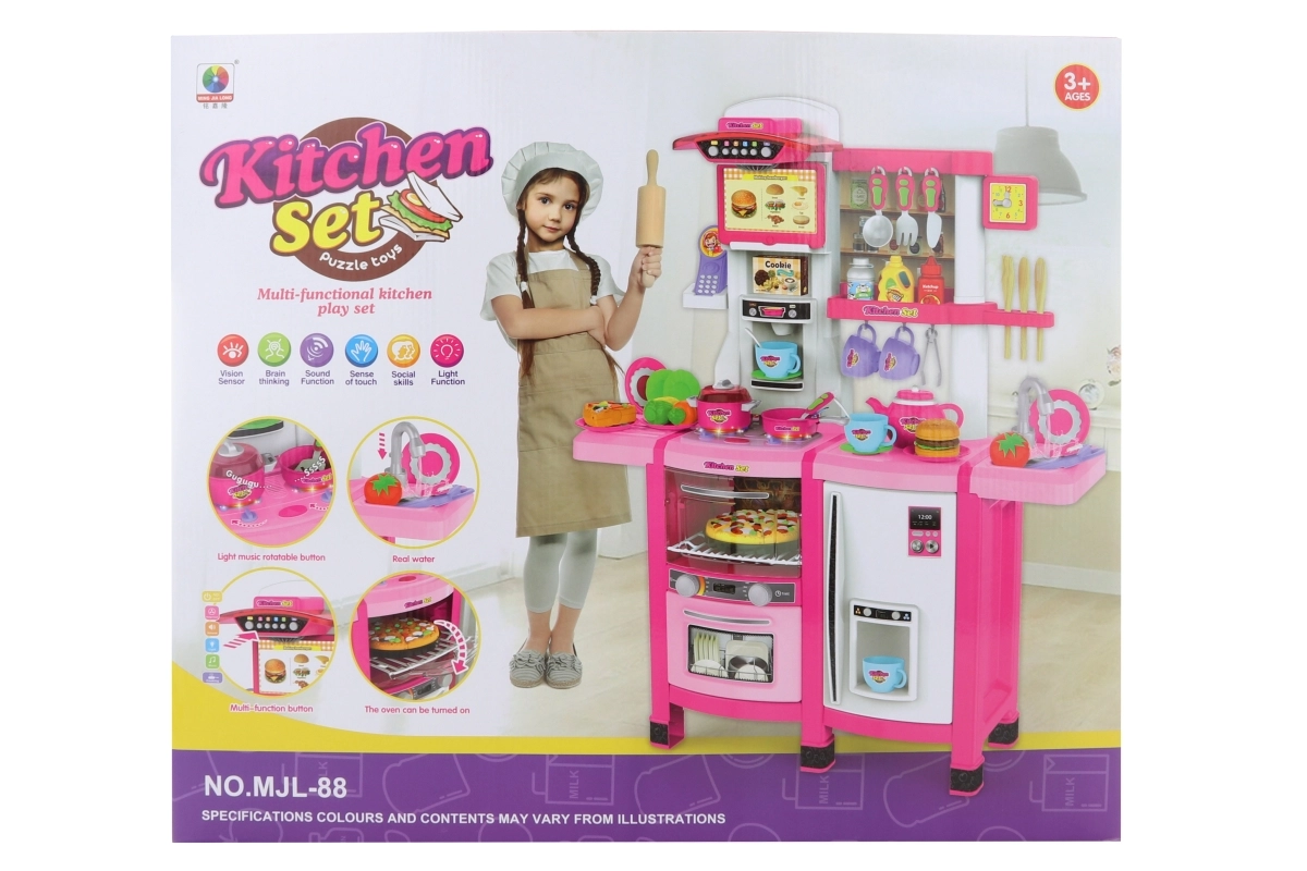 Šī plastmasas virtuvīte ir aprīkota ar plīti, trauku mazgājamo mašīnu, izlietni, krāsni un ledusskapi, padarot to par ideālu rotaļlietu radošiem bērniem. Virtuvītē jūsu mazajiem pavāriem būs atrodami arī plastmasas trauki, pārtikas produkti un ēdieni, kas rosinās viņu iztēli.