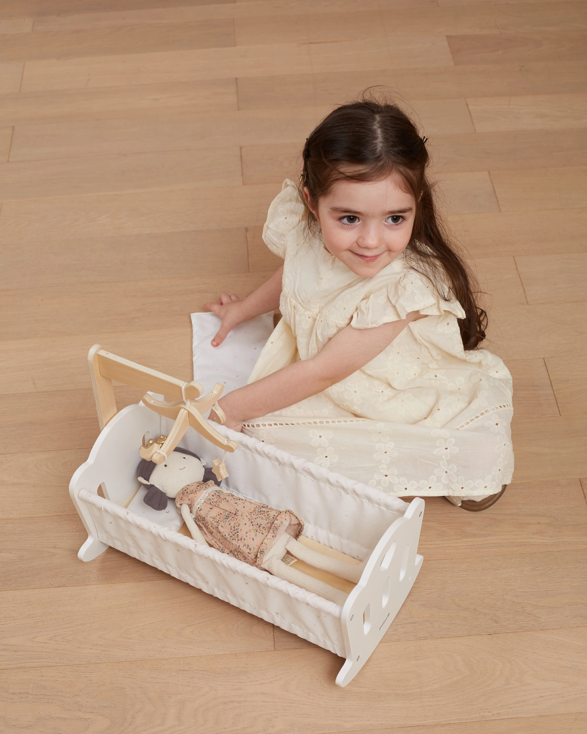 Pateicoties izturīgajām koka detaļām un komplektā iekļautajam spilventiņam ar segiņu, lellei tiek radīta mājīga atpūtas vieta. Šūpulītis ir lieliski piemērots bērnistabai un lieliski veicina sociālās prasmes, iztēli, kā arī sīko un lielo motoriku.